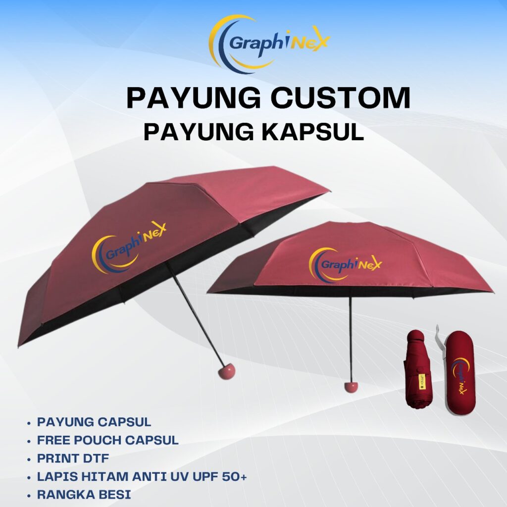 Dapatkan payung custom Anda yang paling stylish dan praktis! Pesan Payung Kapsul sekarang untuk kebutuhan branding atau hadiah. Hubungi kami untuk informasi lebih lanjut.